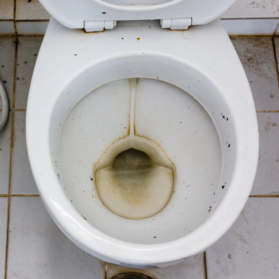 A víz tele van tapadó fémekkel, amelyek lerakódnak a WC-csésze falán.